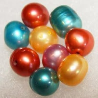 Today's bead, or beads, are pearls dyed in fun spring colors. I've used these pearls in several different jewelry pieces. They can be used in fun, casual pieces or dressed up with crystals and sterling silver. My favorite was weaving the pearls with 4mm crystals through some silver chain.